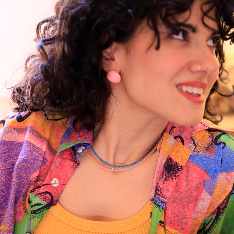 Ανακάλυψε αυτό το υπέροχο κολιέ με μικρές ημιπολύτιμες πέτρες 4 μοναδικές αποχρώσεις – γαλάζιο, ροζ, λαχανί και απαλό κίτρινο – που χαρίζουν χρώμα και ζωντάνια σε κάθε σου εμφάνιση. Το γαλάζιο κολιέ είναι φτιαγμένο από πολύ μικρά, γαλάζια ζιργκόν και τα υπόλοιπα με πολύ μικρές, ημιδιαφανείς, ημιπολύτιμες πέτρες αχάτη σε παλ αποχρώσεις (ροζ, λαχανί ή υπόλευκο κιτρινωπό), περασμένες σε ανοξείδωτη λαιμαριά με ατσάλινο κούμπωμα. Ένα παιχνιδιάρικο και μοντέρνο κόσμημα που φοριέται εύκολα όλες τις ώρες, μόνο του για διακριτική λάμψη ή μαζί με άλλα κολιέ για εντυπωσιακό layering. Το ιδανικό αξεσουάρ για να αναδείξεις το προσωπικό σου στυλ με χρώμα, φρεσκάδα και ανεπιτήδευτη κομψότητα.