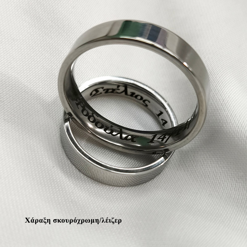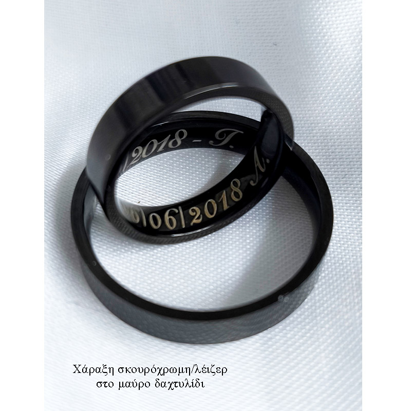 - To μαύρο δαχτυλίδι χαράζεται μόνο με σκουρόχρωμη – λέιζερ, για να φαίνεται.