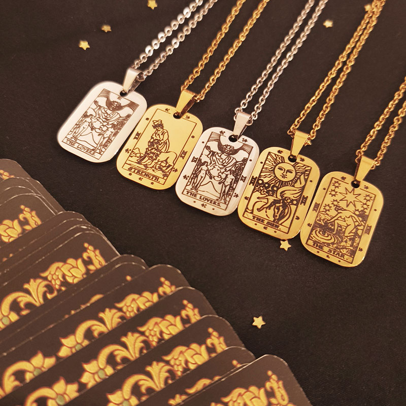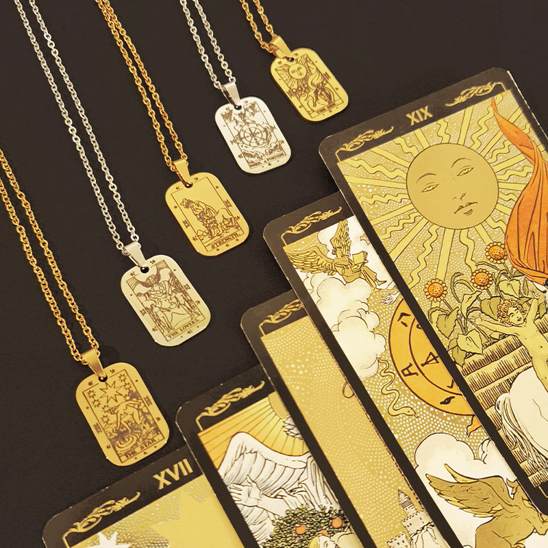Επιλέξαμε τα γνήσια σχέδια των 5 παρακάτω καρτών – συμβόλων από τη Μεγάλα Αρκάνα της Raider Waite. Κάθε μία αντιπροσωπεύει μια θεμελιώδη δύναμη, ιδανική για να συντροφεύει κάθε μας βήμα: