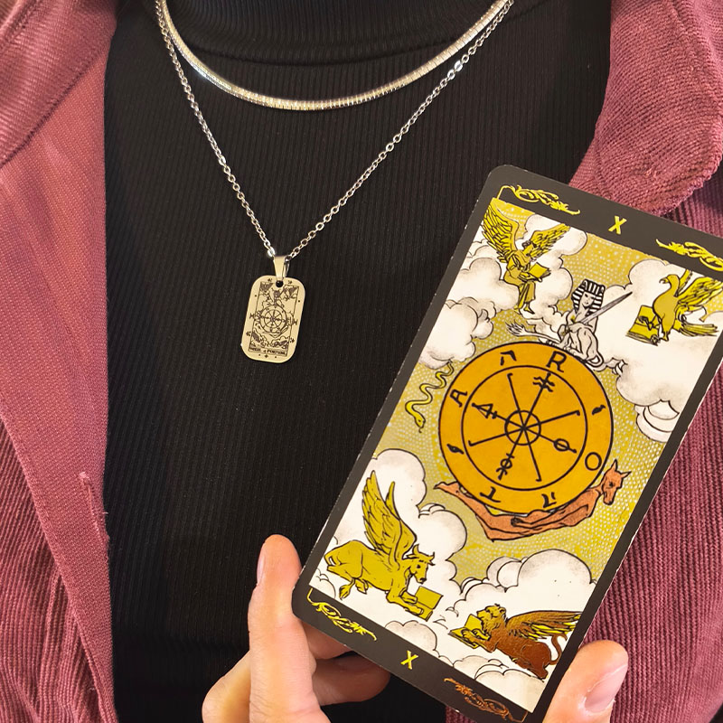 – Wheel of Fortune — η κάρτα της μετάβασης, της αλλαγής και των ευνοϊκών συγκυριών. Σηματοδοτεί τη νέα αρχή και προσφέρει προστασία στις νέες συνθήκες. Για θετικές στροφές της τύχης!