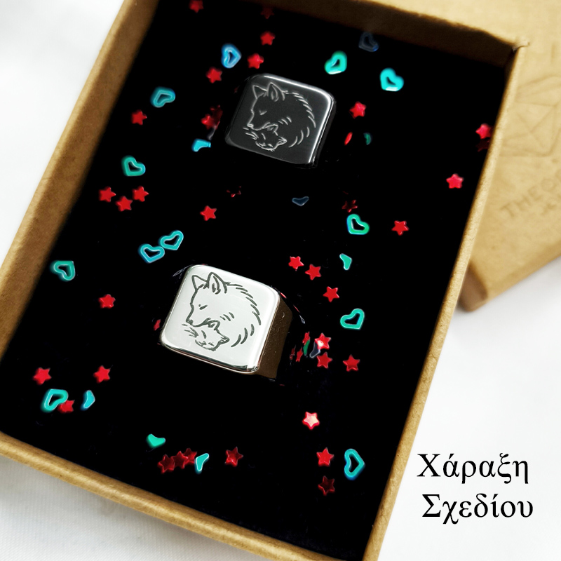 - Αν θες να χαράξεις σχέδιο στην εξωτερική πλευρά, το σχέδιο θα πρέπει να είναι μικρό κι όχι με πολλές λεπτομέρειες, γιατί θα σμικρυνθεί και δεν θα αποτυπωθεί καλά. Η χάραξη σχεδίου γίνεται με λείζερ και το σχέδιο βγαίνει μαύρο στο ασημί δαχτυλίδι και άσπρο/μπεζ στο μαύρο.