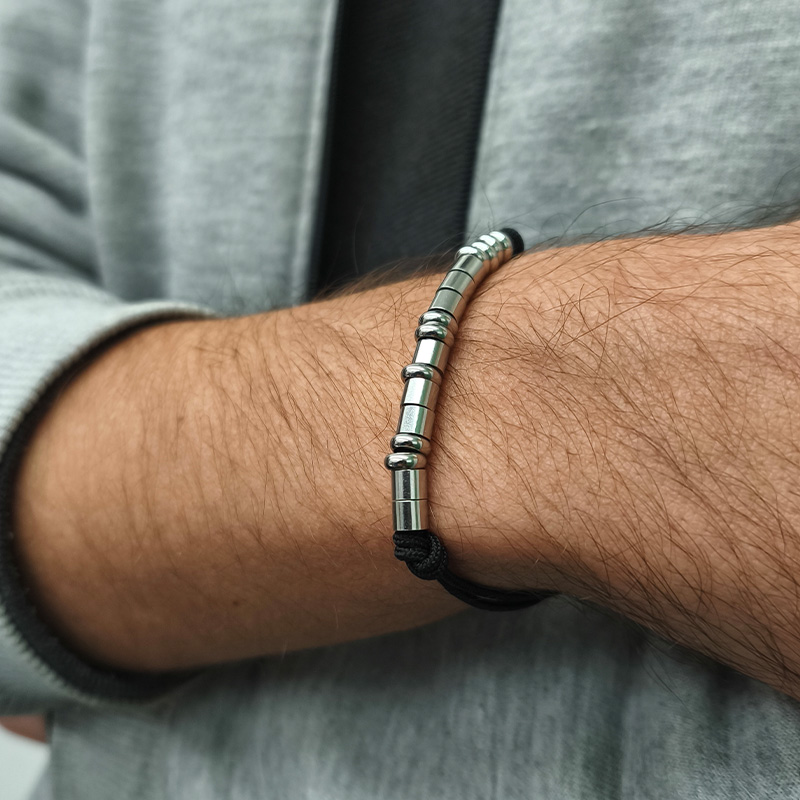 Ατσάλινο βραχιόλι με μαύρο κορδόνι και Σήματα Μορς – Το μήνυμά σου κρυμμένο σε ένα κόσμημα!
